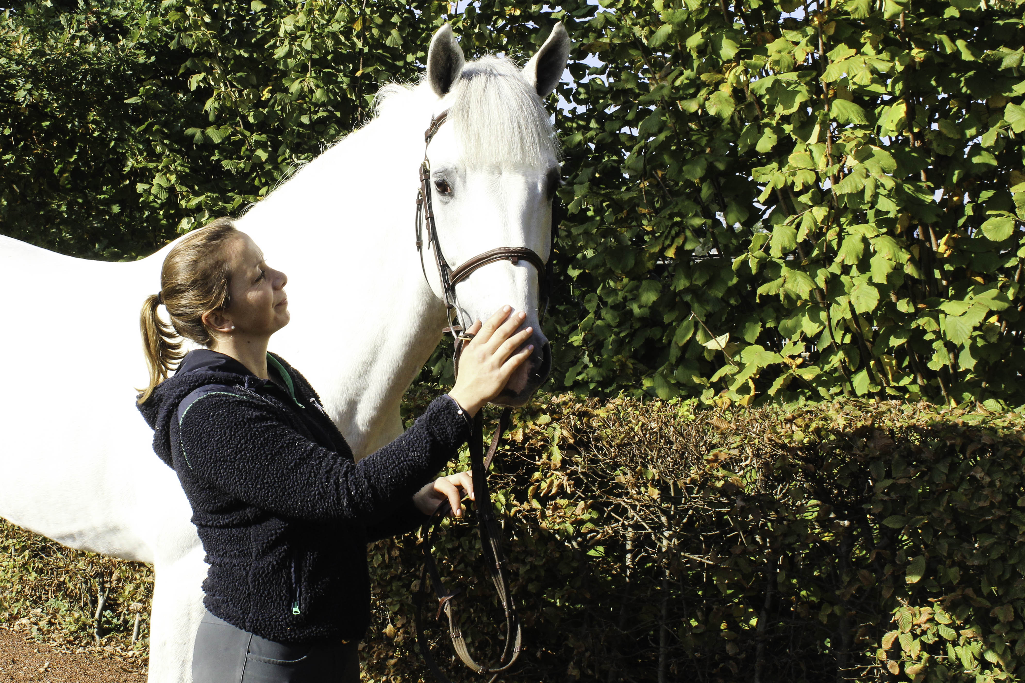 Caro hat ihre Ausbildung im Stall Ahlmann gemacht und hat mittlerweile das Stallmanagement weitgehend übernommen. Sie kümmert sich um das Training der Turnierpferde, die Turnierpapiere und organisiert den Turnierstall. Sie reitet selbst auch bis zur schweren Klasse und studiert nebenbei Sportmanagement. . |